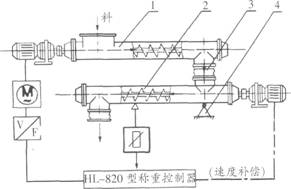 1-給料螺旋機(jī);2-稱重螺旋機(jī);3-軟連接;4-稱重螺旋支點(diǎn)
